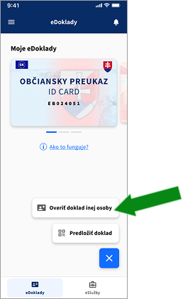Aplikácia eDOKLADY vám umožňuje overiť pravosť a platnosť elektronického dokladu inej osoby.